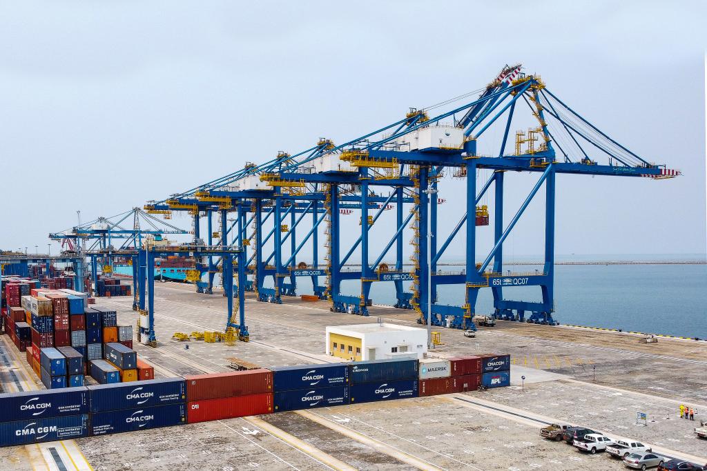 這是2月21日在喀麥隆南部大區(qū)的克里比拍攝的喀麥隆克里比深水港二期照片(無人機(jī)照片)。由中國港灣工程有限責(zé)任公司(中國港灣)承建的喀麥隆克里比深水港二期工程交工儀式21日在克里比深水港碼頭舉行。新華社發(fā)(科普索攝)